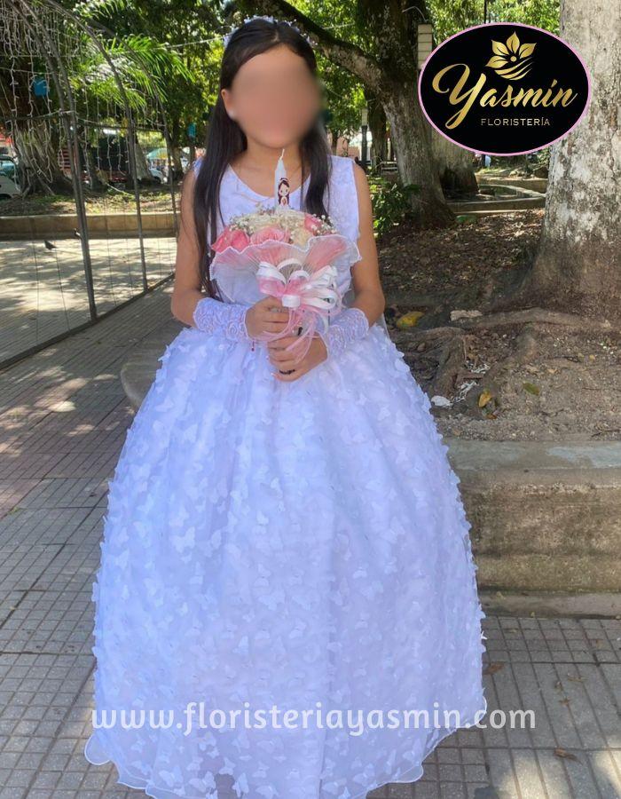 Hermoso arreglo en rosas rosadas y flores blancas.