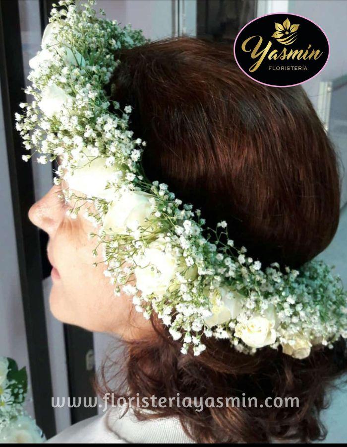 Bella corona en rosas blancas.