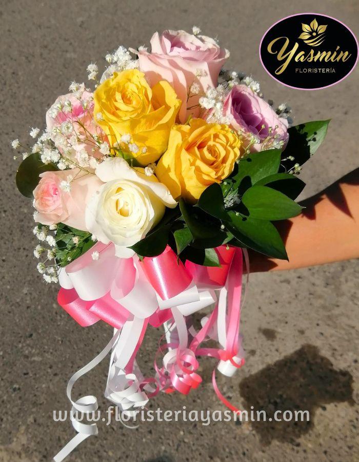 Bello arreglo de mano en rosas.